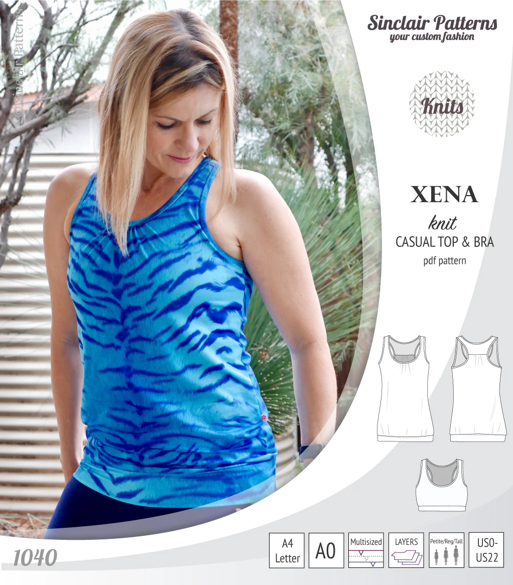 Xena casual racerback tank top with a built-in bra (PDF)